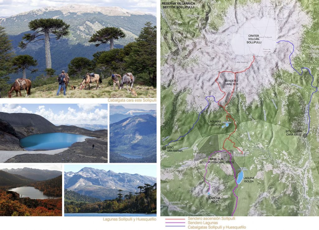Caminar por los senderos del Sollipulli es como retornar a nuestras ancestrales aventuras de magnifica sobrevivencia y real evolución. La silenciosa conexión con nuestros elementos de la tierra, sus prístinas aguas, el fuego y fuerza de sus volcanes y el viento fresco y limpio que a veces se expresa como el Puelche de los originarios Mapuches, todo esto hace que el habitar y o visitar esos territorios sea una experiencia de encuentro única e inolvidable con el regalo presente de la vida en este rincón escondido del Sur de Chile.