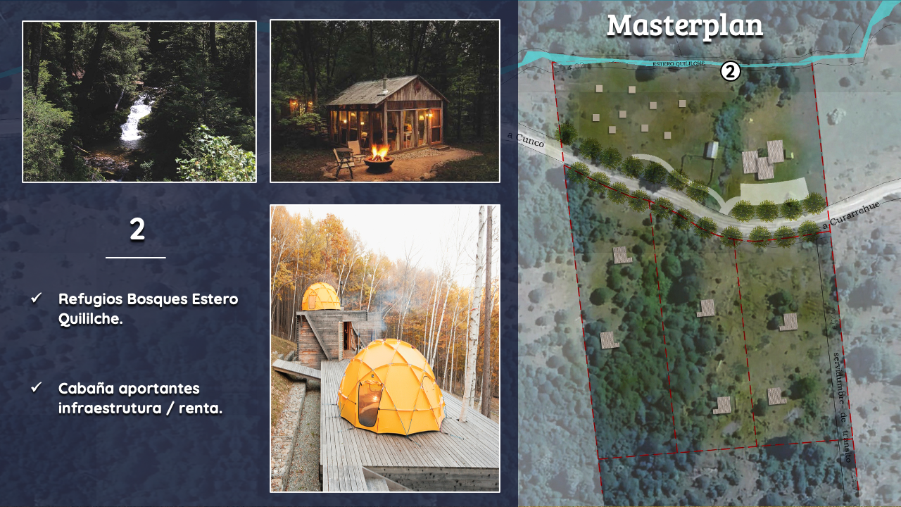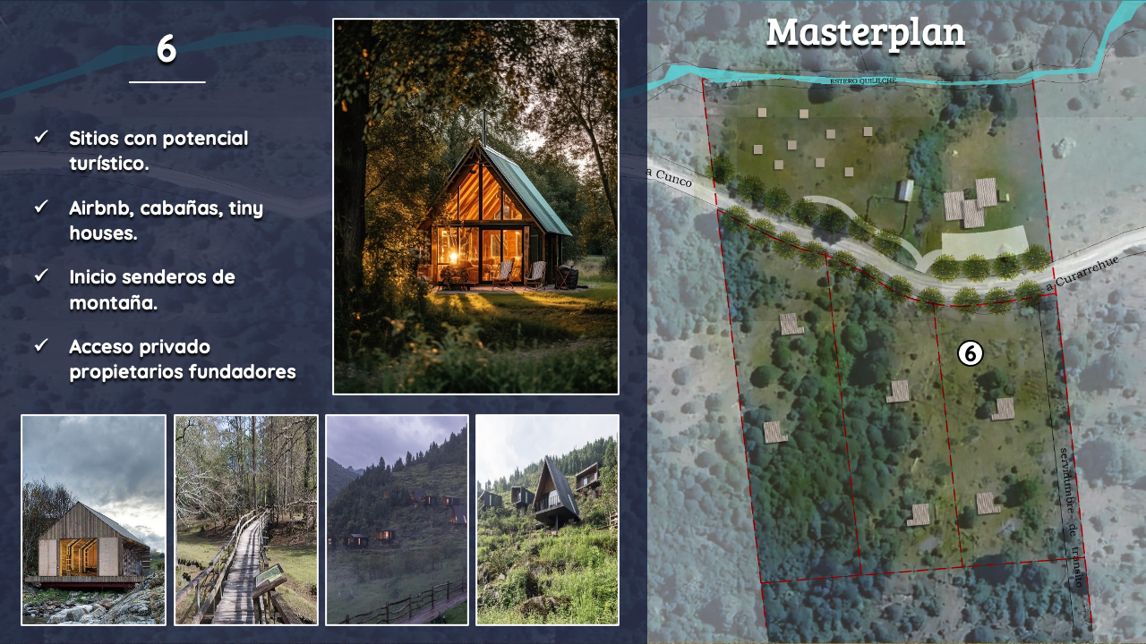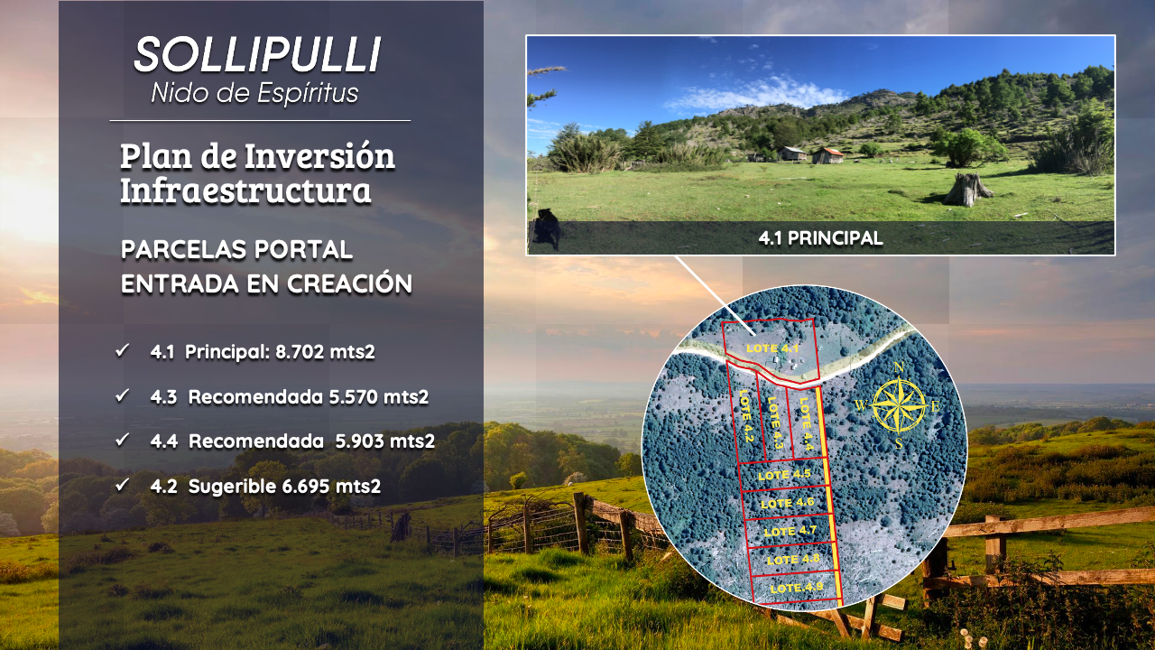 De manera complementaria, desde esta base sur de nuevos posibles moradores, también existe la posibilidad de conexión y traslado con otros sitios de apoyo ya adquiridos incluyendo aguas termales, ubicados en posiciones estratégicas para ofrecer otros accesos a estos hitos, así como también la posibilidad de otros descubrimientos en este territorio salvaje de miles de hectáreas ya protegidas por el Estado de Chile. Uno se encuentra ubicada en el loteo San Rafael bordeando la Reserva Nacional Sollipulli, y varios otros en se encuentra tanto en la cara Sur y Norte del Nido de Espíritus, cuidadosamente estudiados por virtuosos Planes Maestros de generosos consultores internacionales. Estos están destinados a ofrecer cabalgatas, nuevos senderos y a dotar de una reserva de espacios habitables y fomento de turismo de conservación en circuitos como el destino de Torres del Paine reconocido internacionalmente ……convocando así la magia del encuentro.