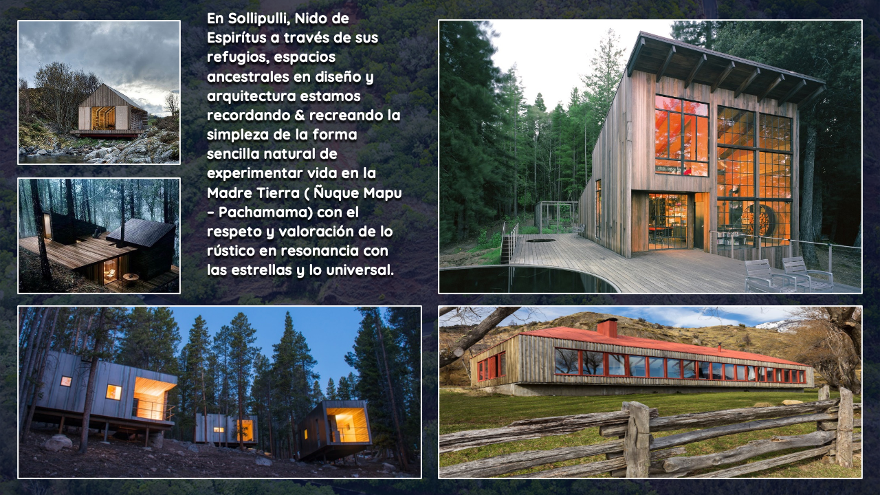 El principal sagrado atractivo de esta aventura y descubrimiento, es su cercanía con la caldera del volcán; al “Nido de Espíritus”, origen del vocablo Sollipulli según sus habitantes originarios Mapuches locales. Esta mística presencia de esta cadena de las montañas andinas del Sur de Chile permite transportar a través de sus cuatro mágicos elementos: tierra, agua, fuego y vientos, toda la Energía Divina y milenaria que emana del magma de la Ñuque Mapu… ( Pachamama de los pueblos del sur ) , provocando y permitiendo que cada travesía a geysers, lagos cordilleranos, parques nacionales continuos de miles de hectáreas, bosques de araucarias , transformen a este territorio, proyecto y experiencia en un refugio que incentive a habitarlo y protegerlo con su primera red de sitios exclusivos y rústicos que esta ya rodeado de visionarios y aventureros extranjeros que iniciaron esta noble iniciativa junto a sus antiguos moradores y colonos…